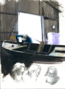réparation d’une petite barque en contreplaqué.