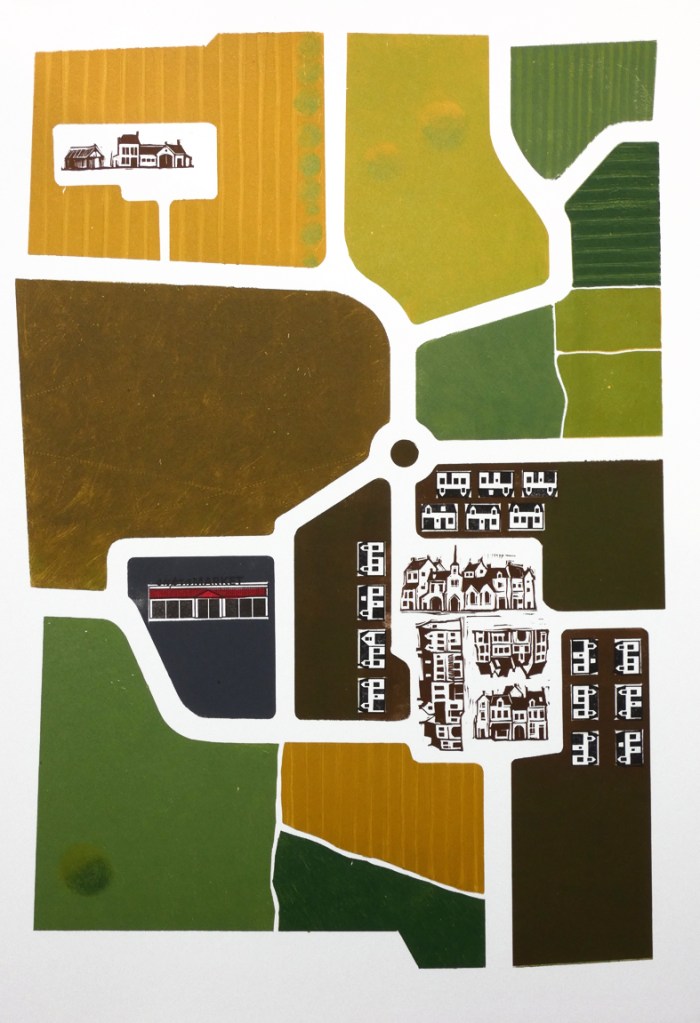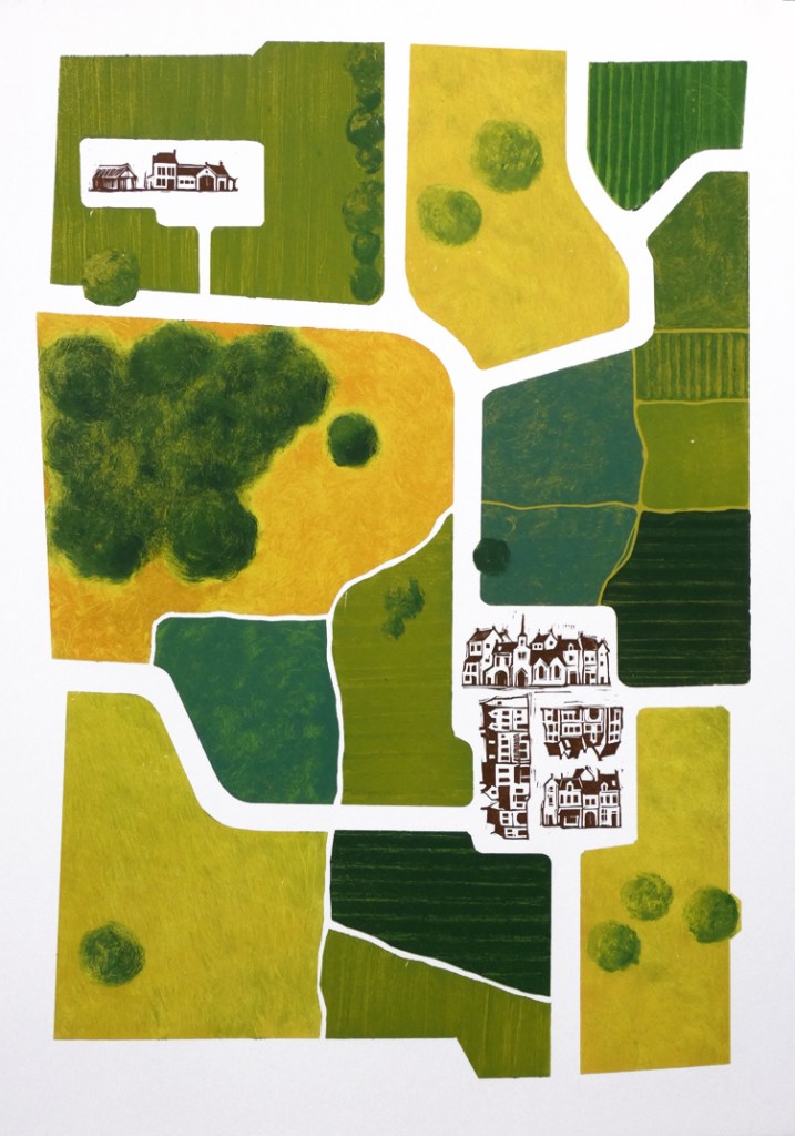 Linogravure manuelle et laser, monotype sur plastique. Format papier : 65 x 42 cm. 6 ex.