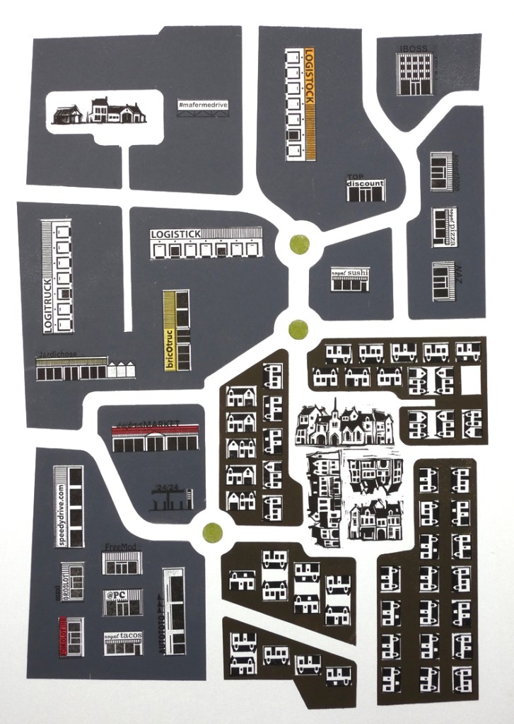 Depuis quelques temps j’ai pu découvrir les charmes du PLU de la bourgade du C… en S…, qui ressemble à beaucoup d’autres. Il en ressort que le « coeur de village » est un espace où les règlements d’urbanisme sont particulièrement tâtillons ; mais 200 mètres plus loin, en « zone à urbaniser », tout change, et le bitume est roi. PLU : permis de laideur urbaine, ici illustré en 3 étapes.